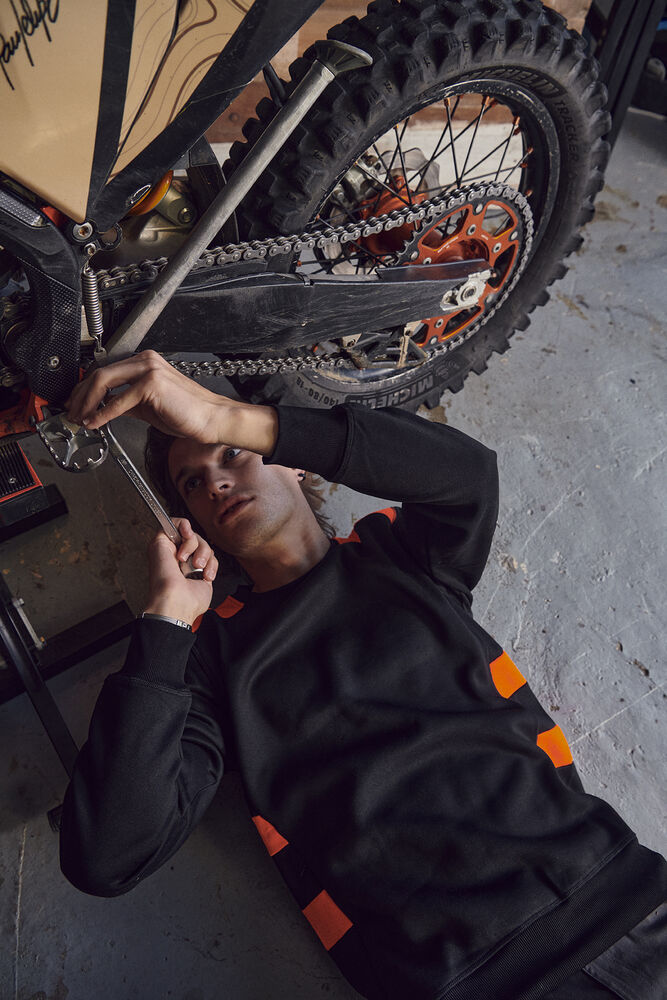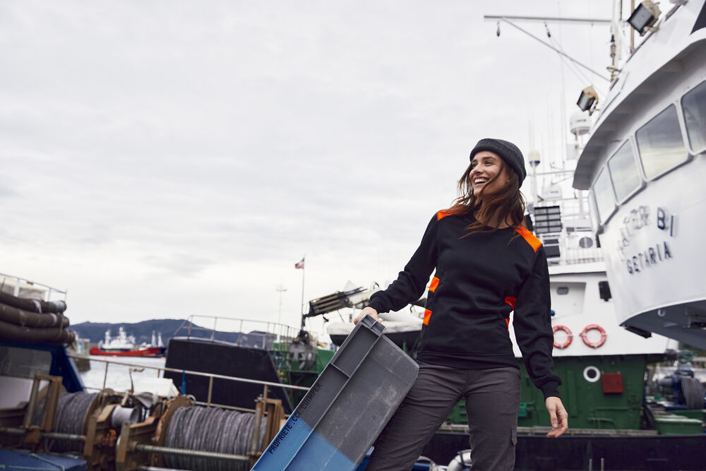 En kontrast unisex sweatshirt for øget synlighed med rund hals . Fremstillet af recycled polyester, der har en bomuldsfølelse. En skjult sidelomme med lynlås. Ribbede manchetter og forneden i ribstof. Leveres med en let aftagelig neck label for enkel ommærkning.