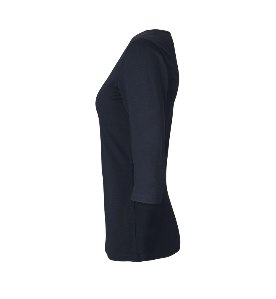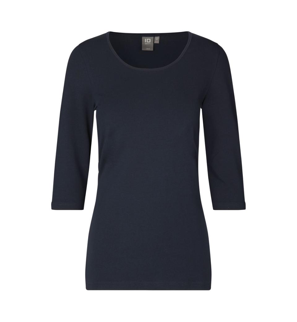 T-shirt i behagelig bomuldskvalitet med stretch, ¾ ærmer og rund hals. Smal ribkant i hals og ærmegab. Tætsiddende model.